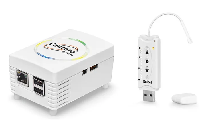 Bei Centero von elero handelt es sich um eine intelligente Haussteuerung, die sämtliche Bereiche der eigenen vier Wände abdeckt. Rollläden, Licht, Heizung und andere Haussysteme lassen sich manuell oder vollautomatisch regeln und auf die eigenen Bedürfnisse zuschneiden. Zur Inbetriebnahme wird ein Transmitterstick in den Server gesteckt und mit dem Router vernetzt.