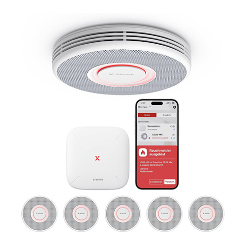 Das von uns im März 2025 sehr gut (96/100) bewertete XS0B-MR61 Rauchmelder Set verbindet zuverlässigen Brandschutz mit moderner Smart‑Home‑Technologie. Denn bei Rauchentwicklung sendet das System sofort Pushnachrichten ans Smartphone. Zudem lassen sich bis zu 24 Melder zu einem einzigen Warnnetz koppeln. Sobald ein Rauchmelder Alarm schlägt, ziehen alle sofort nach – ein starkes Plus für große Wohnungen oder Häuser.