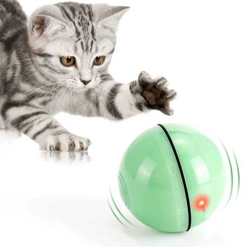 Dieses runde Gadget kullert auf Knopfdruck durch die Wohnung und leuchtet dabei geheimnisvoll. Bei Kontakt mit Möbeln oder Wänden ändert es automatisch die Richtung. Nach 30 Minuten bleibt der robuste Ball aus schlagfestem und ungiftigem ABS-Kunststoff automatisch stehen, um zu verhindern, dass die Katze dauerhaft das Interesse an ihm verliert.