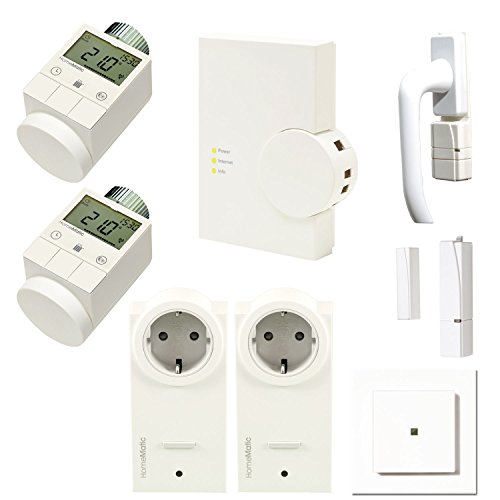 Für den Bereich Heizung und Klima bietet Homematic das Homematic IP Starter Set Raumklima an: Es enthält die Access Point Basisstation, ein Heizkörperthermostat sowie einen Fenster- und Türkontakter.