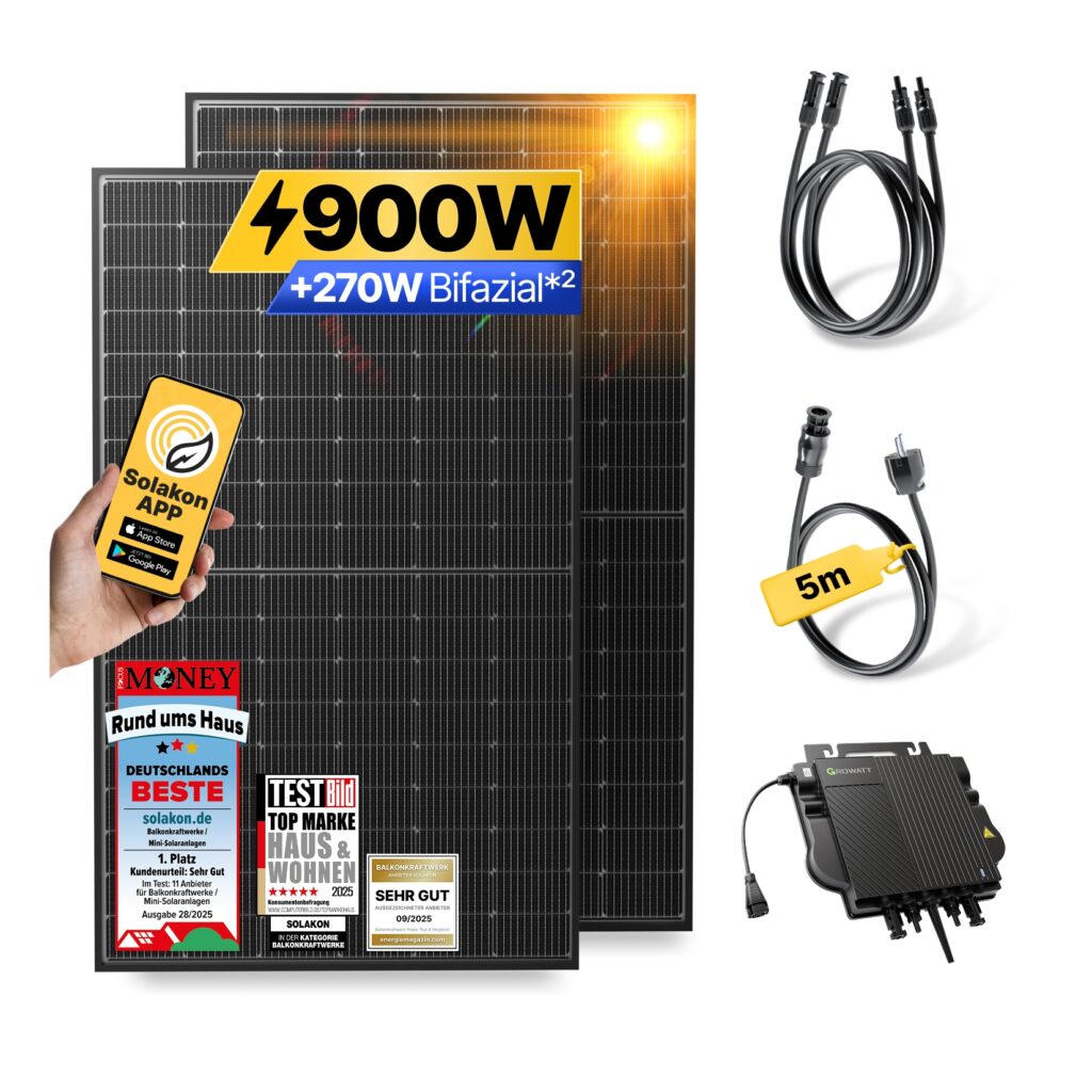 Günstiger Einstieg: 900 W Solakon Balkonkraftwerk mit 800 W Wechselrichter