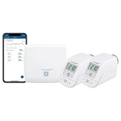 Starter Set bestehend aus Gateway und drei Eurotronic Heizkörper-Thermostate für die ortsunabhängige, intelligente Heizungssteuerung. UVP: 119 Euro (Stand: 11/2021)