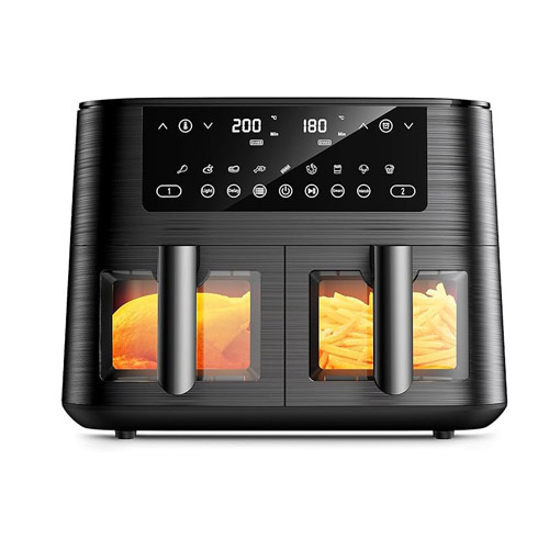 Heißluftfritteusen mit Doppelkammer ermöglichen das gleichzeitige Garen verschiedener Speisen bei unterschiedlichen Temperaturen und Zeiten. Das spart Zeit, verhindert Geschmacksübertragungen und eignet sich ideal für Familien oder vielfältige Mahlzeiten.